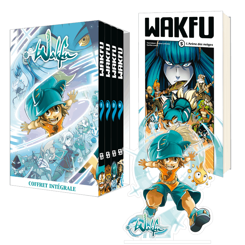 The heroes of the WAKFU animated series go on adventures in a manga as well! Dive into a full story arc in this limited edition consisting of 5 volumes, a protective box and a Yugo standee, based on an illustration by Cynthia Leman.
