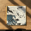 This gilt-edged square of Japanese cardstock is illustrated and signed by Cynthia Leman, the artist behind WAKFU: La grande Vague. The image features Yugo in the heat of the action! But who might his lightning bolts be aimed at?
