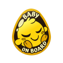 **Baby on board : Bébé à bord. Ce magnet permet de signaler la présence d’un bébé dans une voiture pour prévenir les autres conducteurs ou les secours en cas de problème.