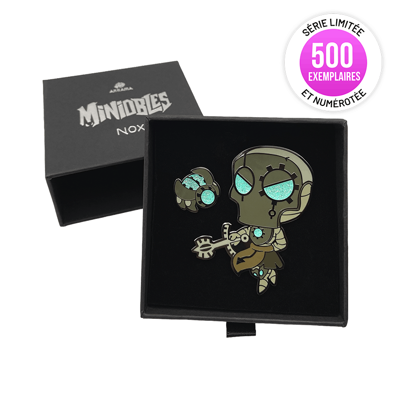 « Mignon » n’est pas le premier mot qui nous vient à l’esprit face à Nox. Pourtant… on vous met au défi de ne pas y penser quand vous découvrirez la version chibi de ce pin’s de collection Miniobles, avec sa petite noxine indépendante (mowwww…) ! Série limitée et numérotée à 500 exemplaires.